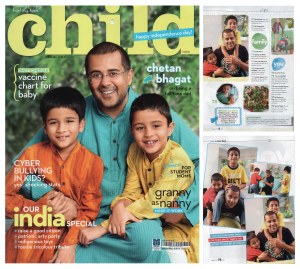 Vikram’s recent shoot with Chetan Bhagat and his two adorable boys for Child Magazine, was one of the most fun and prestigious shoots we had in a long time. No makeup, no posing, no planning and no temporary set. This photoshoot was to capture fatherhood in all its glory – an absolutely natural picture where he would be enjoying and playing with his kids.